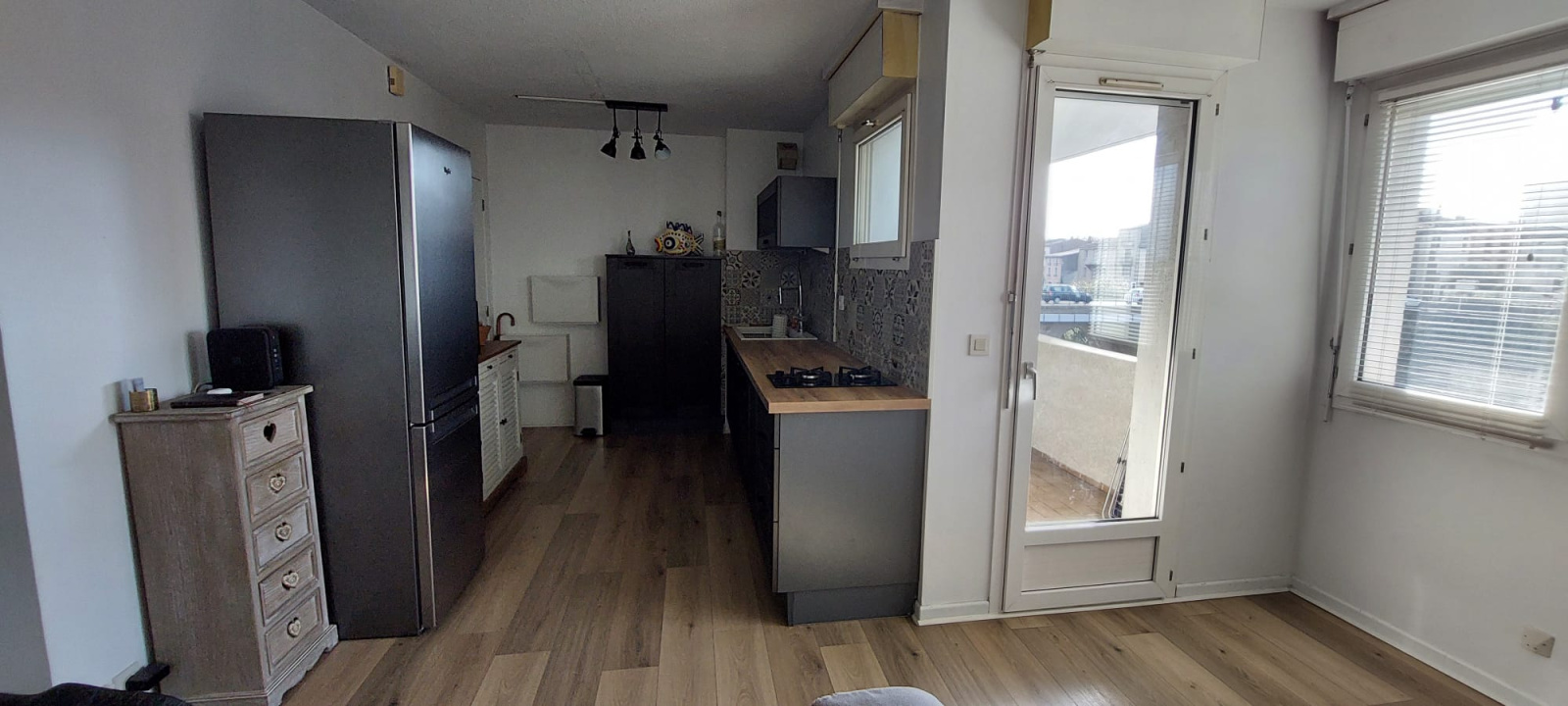 Réf 12622 JR - CARCASSONNE - Un appartement T2 entièrement rénové dans une petite copropriété proche du centre ville et face au Canal du Midi. Entrée sur une cuisine équipée ouverte sur la pièce de vie, une chambre avec placards, une salle d'eau avec WC. Un balcon couvert avec vue sur la bastide et le Canal du Midi. Box de stockage. Belle rénovation, aucun travaux à prévoir.