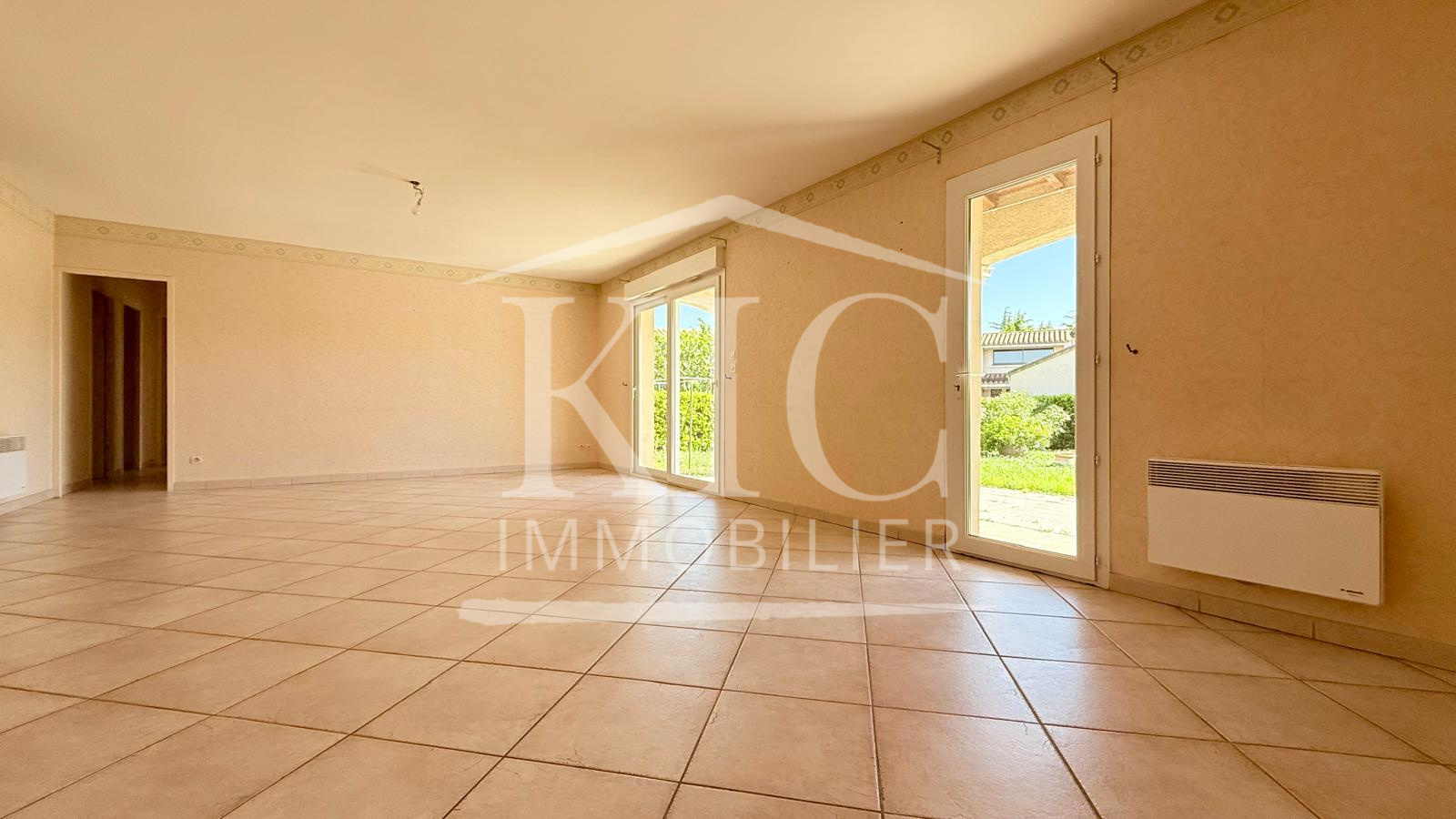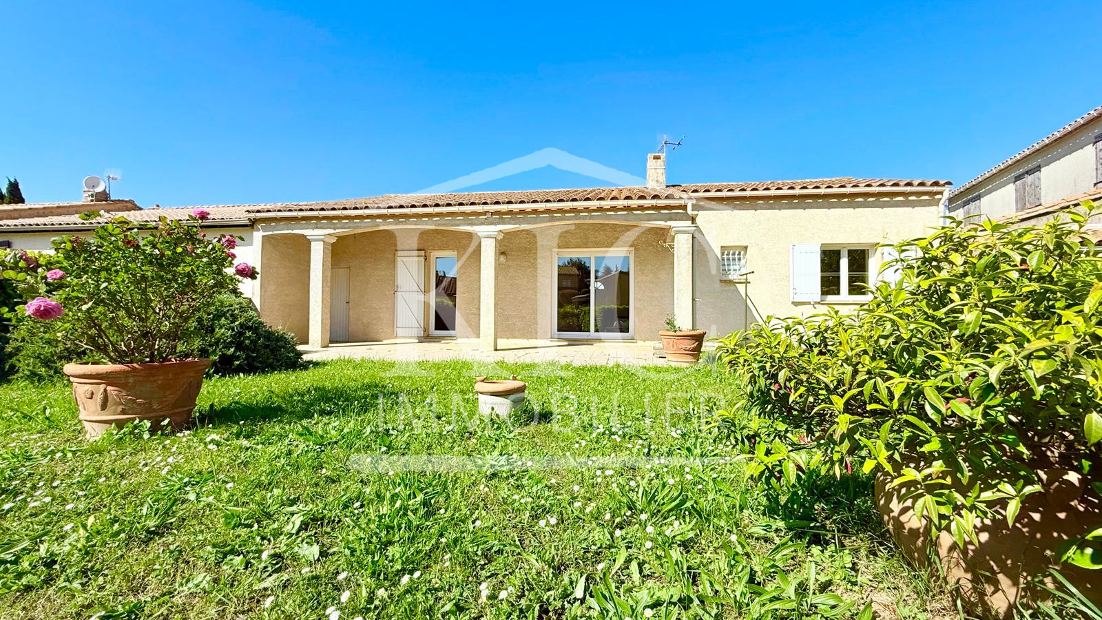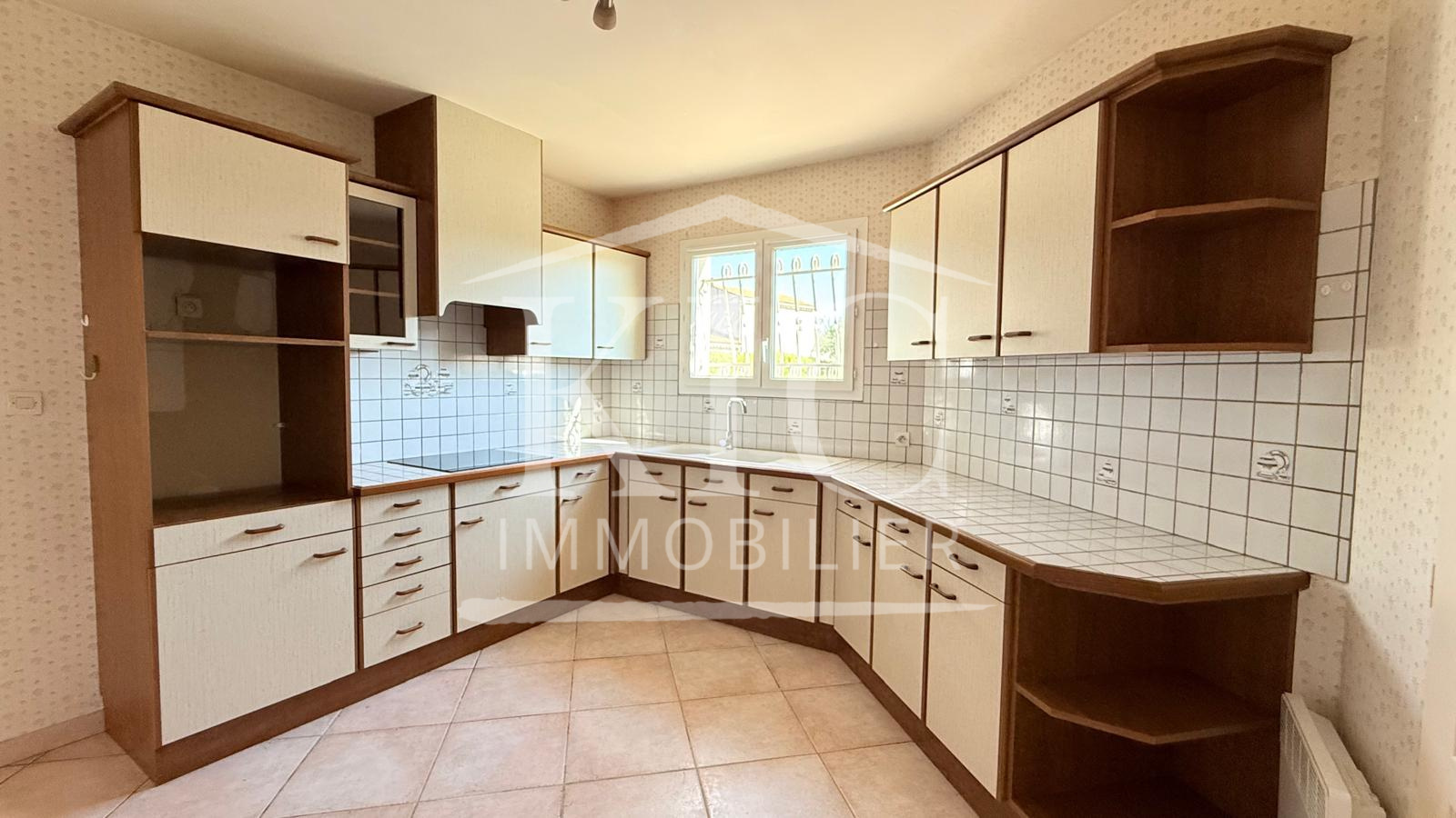 Réf 12727 ME - CARCASSONNE - Proche commerces et écoles sur parcelle de 487 m², maison de plain-pied d'environ 102 m² habitables, composée d'un séjour de 38 m², cuisine équipée, 3 grandes chambres avec placard, salle de bain avec douche, WC, garage traversant. Chauffage électrique, double vitrage, terrasse couverte.